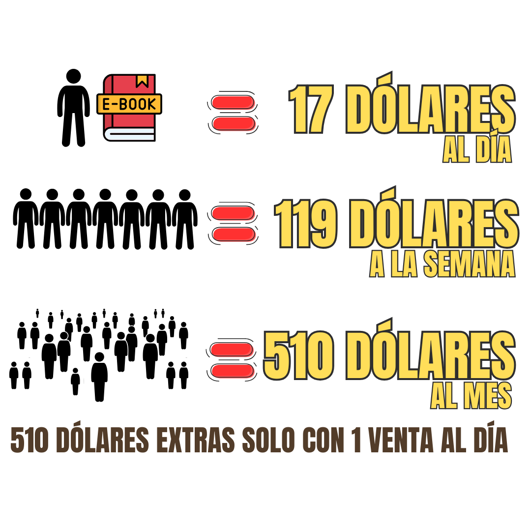 Con solo una venta diaria de un ebook, podrías ganar más de $500 dólares extra al mes.